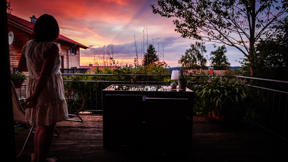 Ein 3x4m großer Balkon mit Zugang zum Garten und einem wundervollen Sonnenuntergang vervollständigt das Bild eines perfekten Erholungsortes.